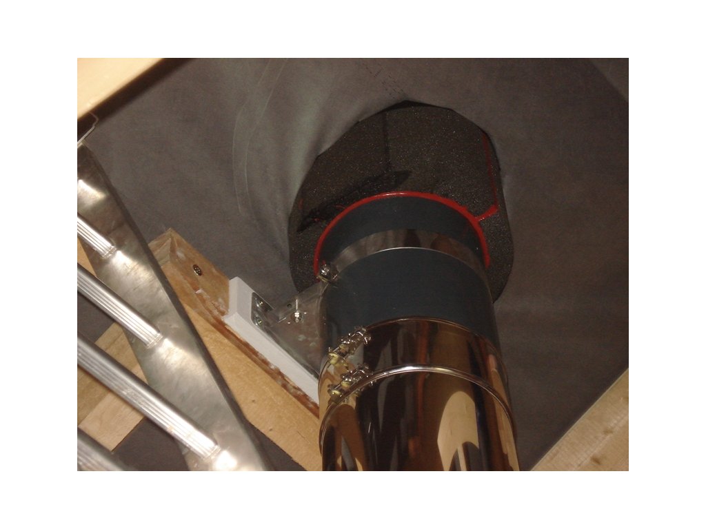 Parotěsný prostup je určen pro všechny tyty stropních i střešních konstrukcí a umožňuje kromě bezpečného oddělení komínu od hořlavých materiálů také bezpečné napojení parozábrany.